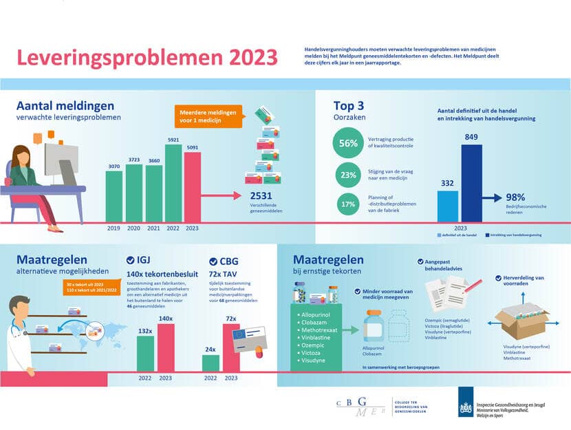 Het aantal medicijnen waarvoor verwachte leveringsproblemen zijn gemeld is in 2020 met ongeveer 6% gegroeid ten opzichte van ...